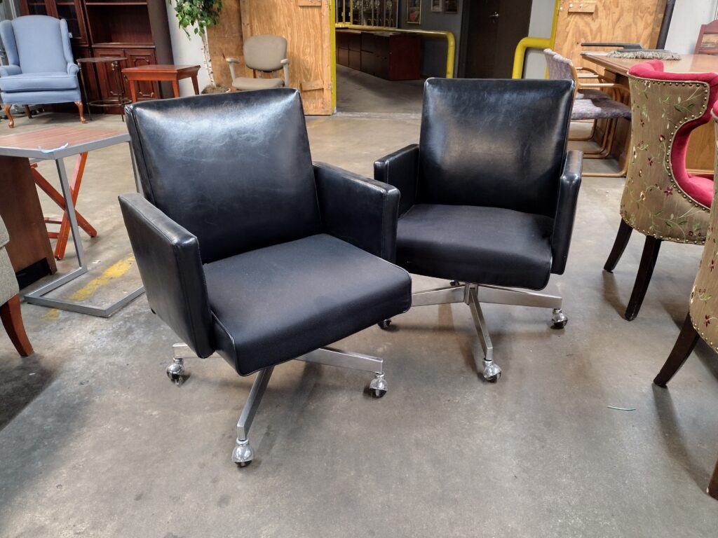 Swivel Side Chair Set on Casters - Black
