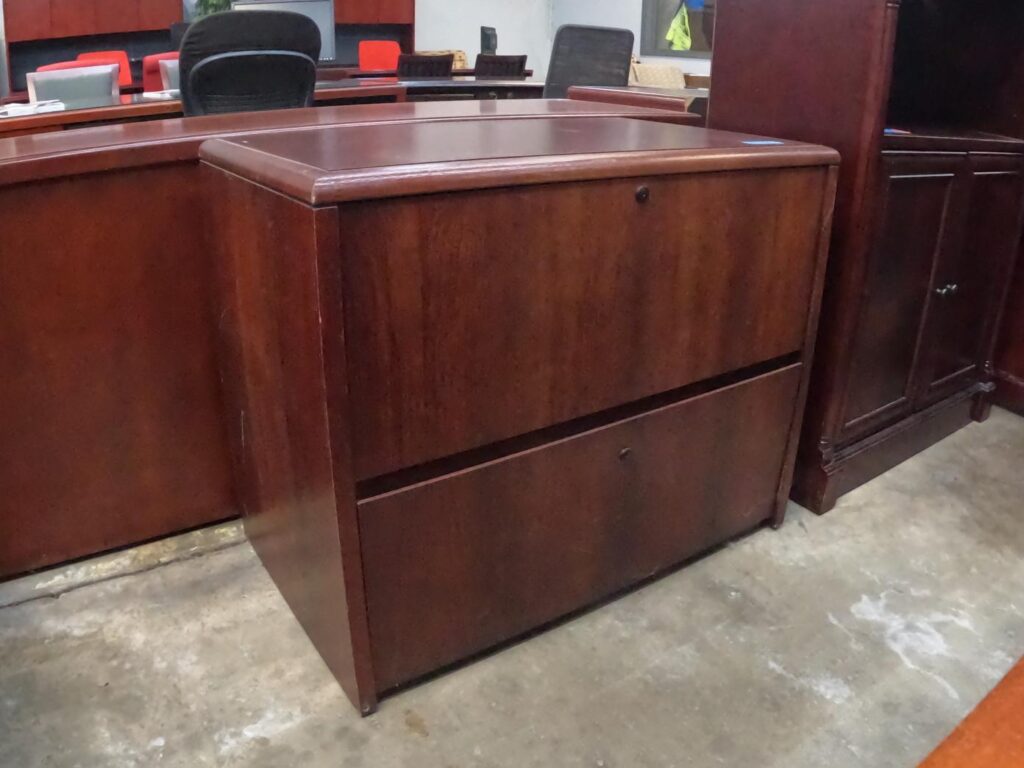 Mahogany Wood Veneer Two Drawer Lateral File Cabinet