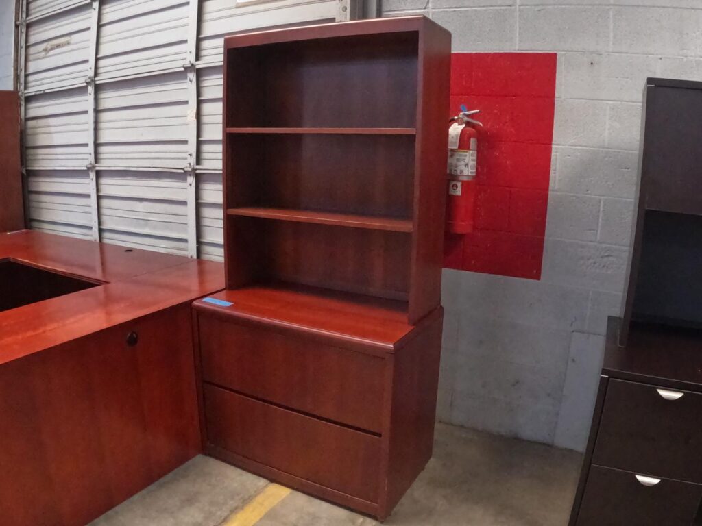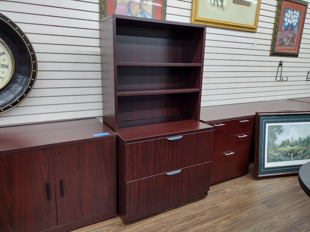 Mahogany Two Drawer Lateral File Cabinet with Hutch