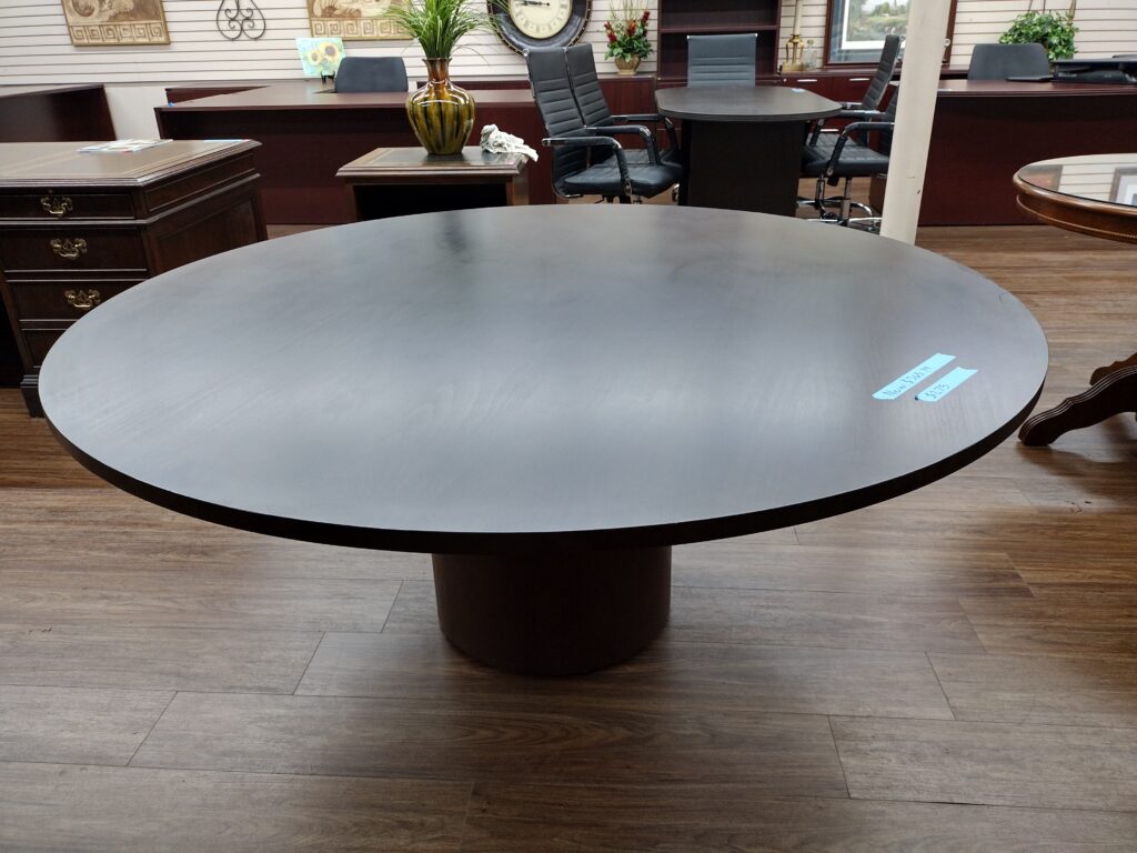 5′ Round Espresso Conference Table. Commercial Laminate Top. Availability is subject to change.