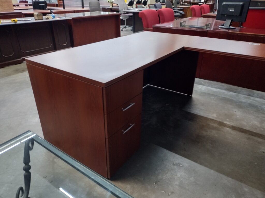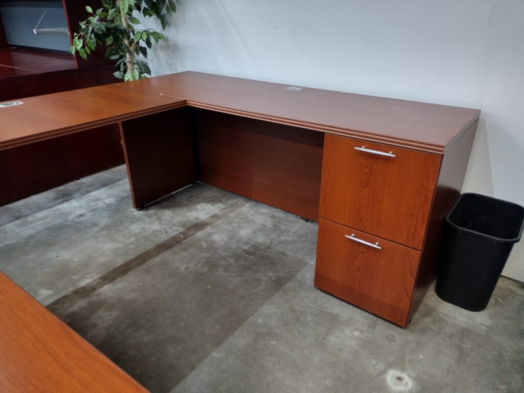 Cherry Laminate Double Deluxe Pedestal U-Desk