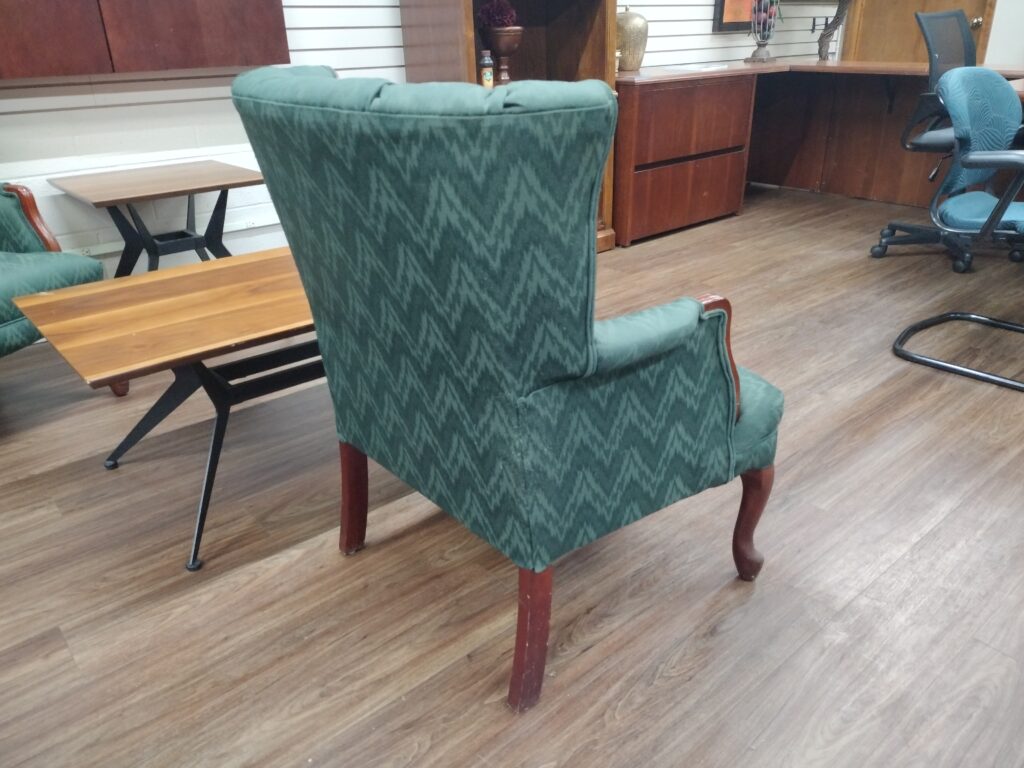 Green Wingback Accent Chair Set. Set includes 2 chairs. Individually, they are $250 per. Set with the Coffee Table and End Table pictured is $585. Availability is subject to change.