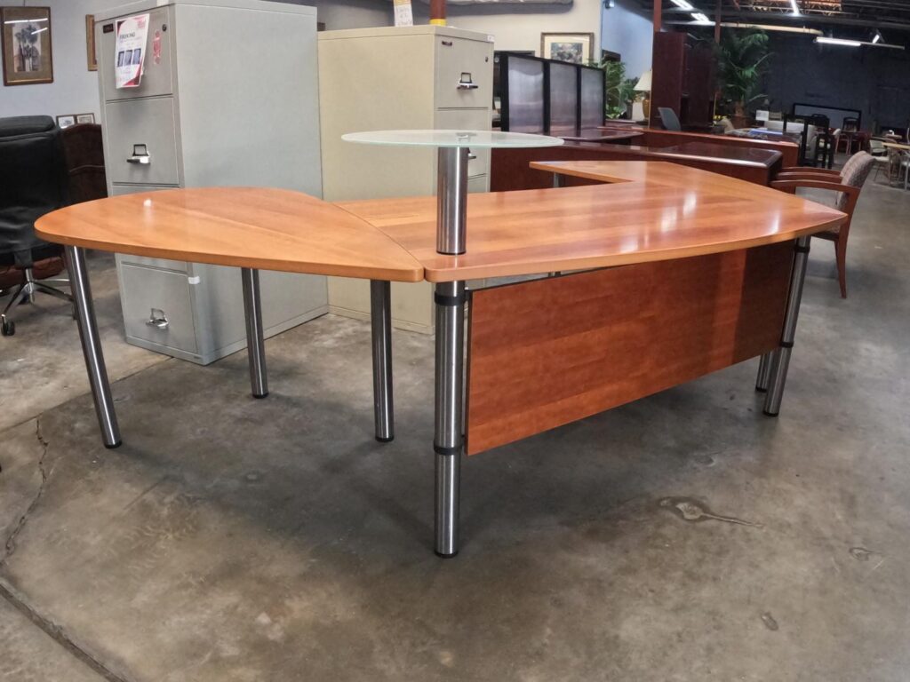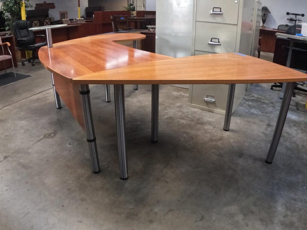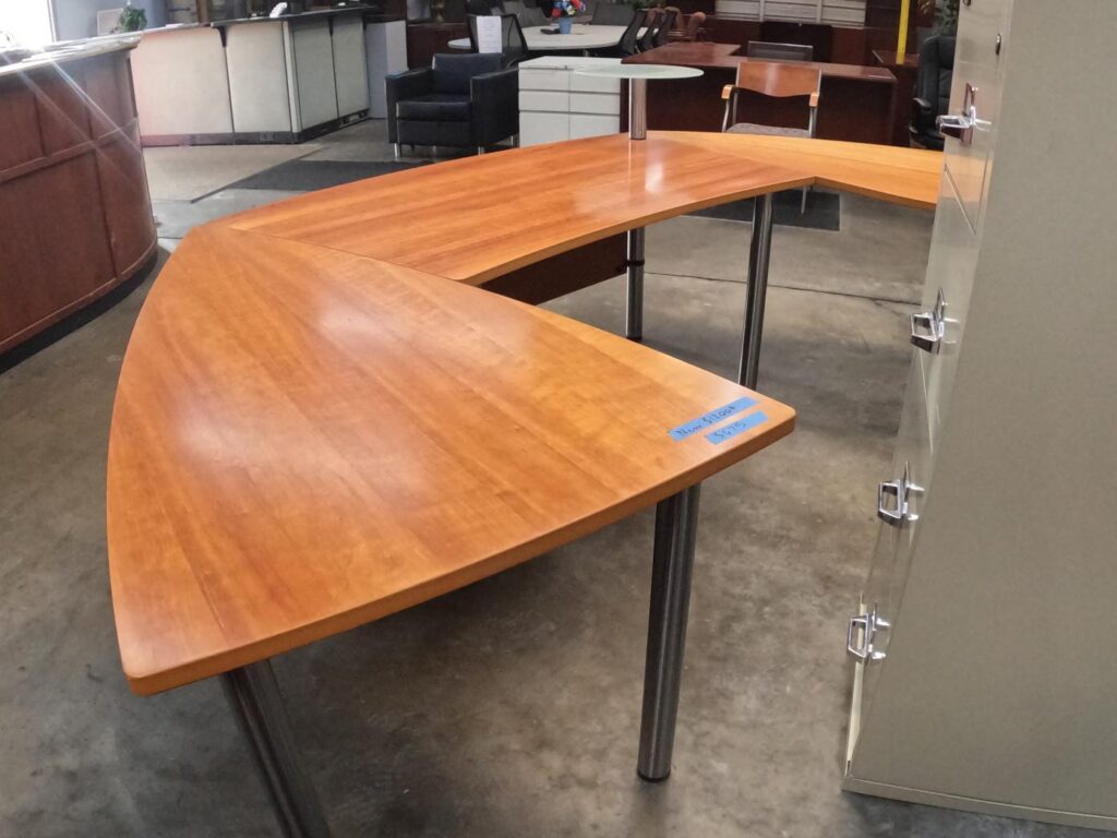 Honey Oak Reception Desk with Glass Display Stand – There are 4 matching chairs that go with this. Set Price is $750