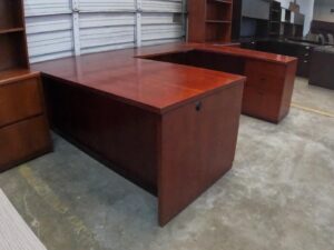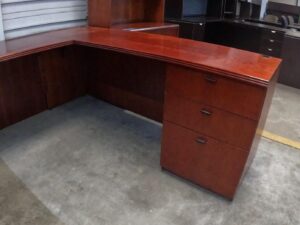 Mahogany Wood Veneer U-Desk with Fluted Edge. Includes Two Box/Box/File Pedestals
