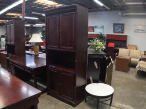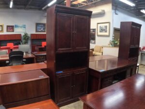 Traditional Writing Desk. Comes with a pedestal and we have matching combination cabinets for $450. The set price is $1200.